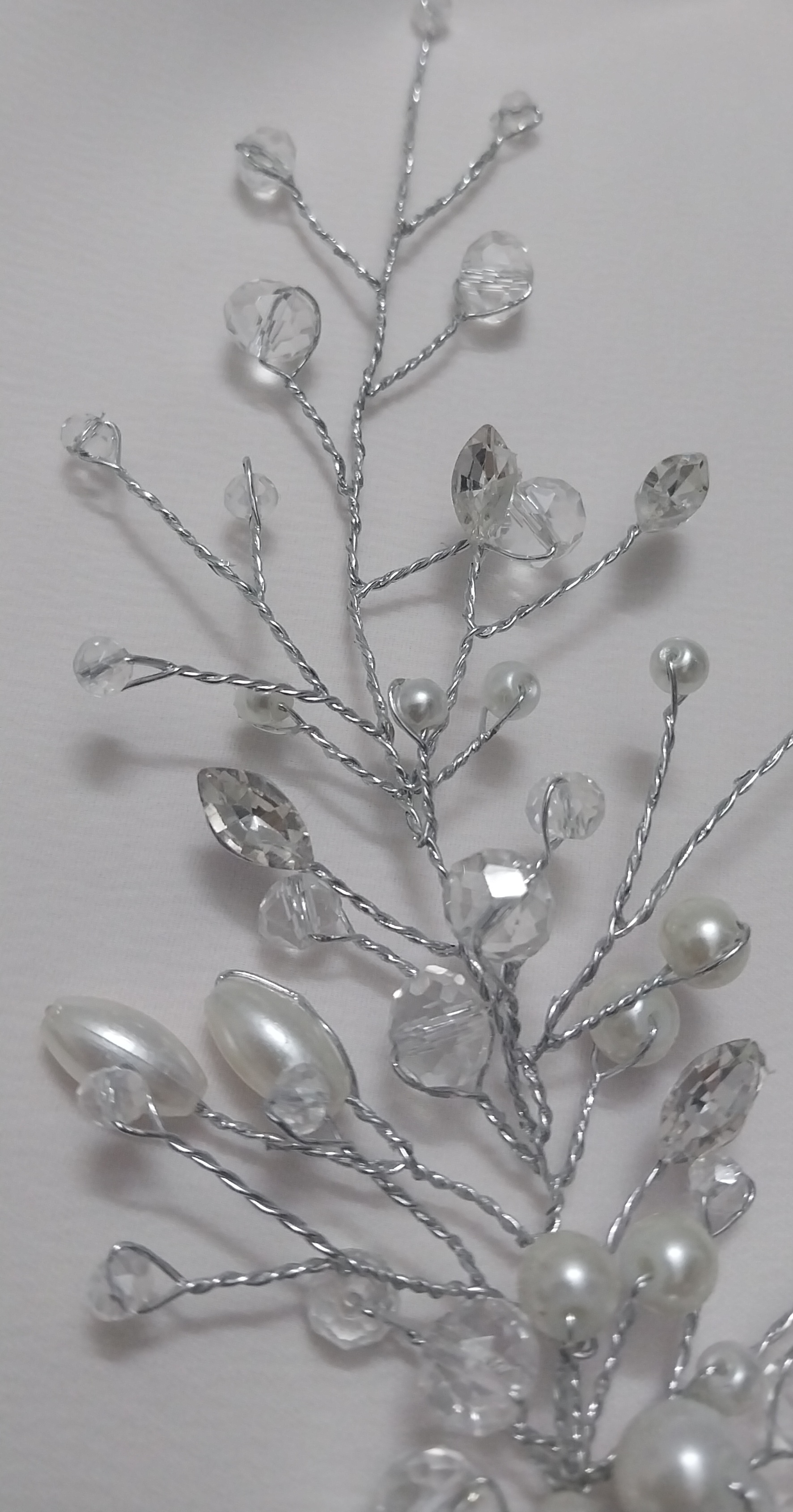 این کنار سری تاج با طول تقریباً ۱۵ سانت طراحی شده و ترکیبی از مروارید و کریستال است. قسمت پایین آن پر و چشمنواز است و هرچه بالاتر میرود، طراحی خلوتتر شده و انتهای تاج باریک میشود. این طراحی باعث میشود تاج روی سر بهطور طبیعی و متوازن جلوه کند.
