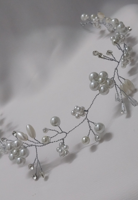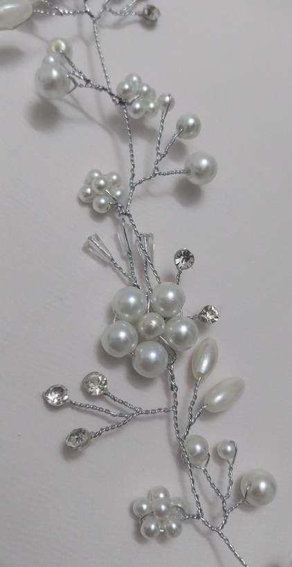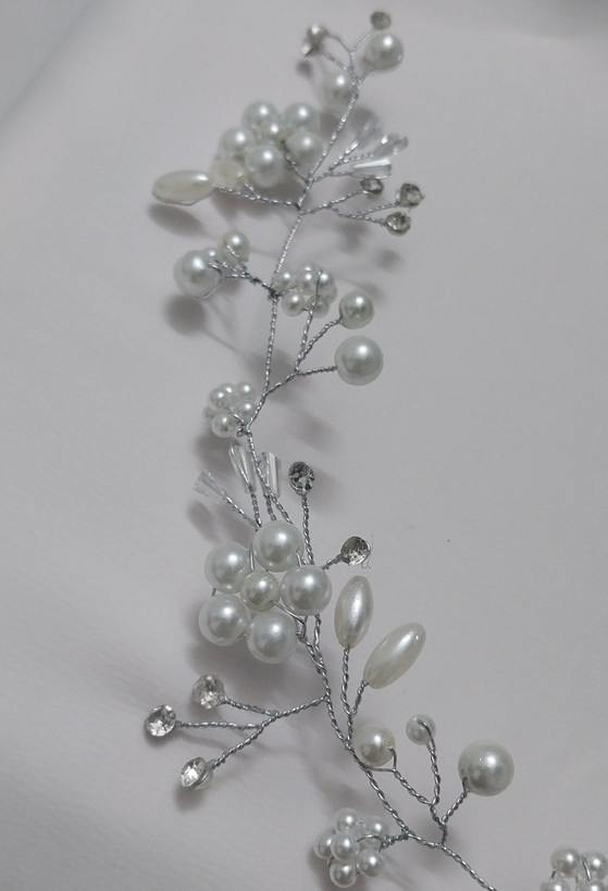 ریسه عروس بلند مدل گل سپید جنس مروارید و سنگ