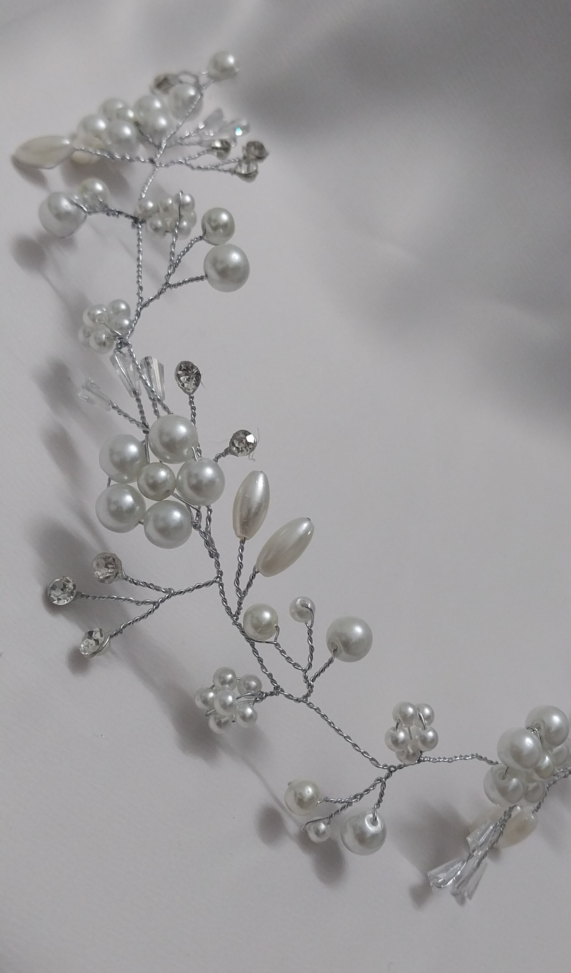 ریسه عروس بلند مدل گل سپید جنس مروارید و سنگ