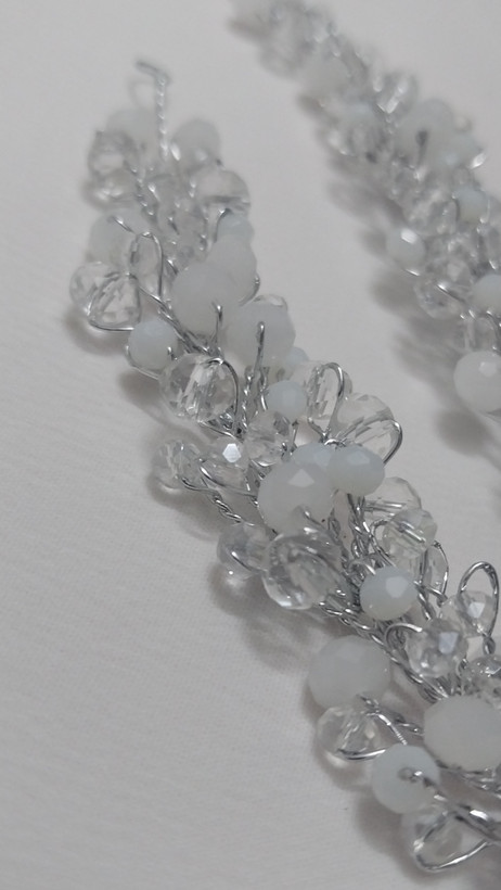 این کنارسری دستساز با طراحی مینیمال و مدرن، ترکیبی چشمنواز از کریستالهای شیشهای شفاف و کریستالهای سفید مات است. سادگی در کنار درخشندگی خاص کریستالها، جلوهای شیک و متفاوت به استایل شما میبخشد.