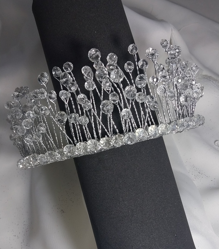 این تاج با طراحی الهامگرفته از طبیعت ساخته شده؛ شاخههای ظریف که در انتهای هرکدام یک کریستال شفاف و درخشان قرار گرفته است.