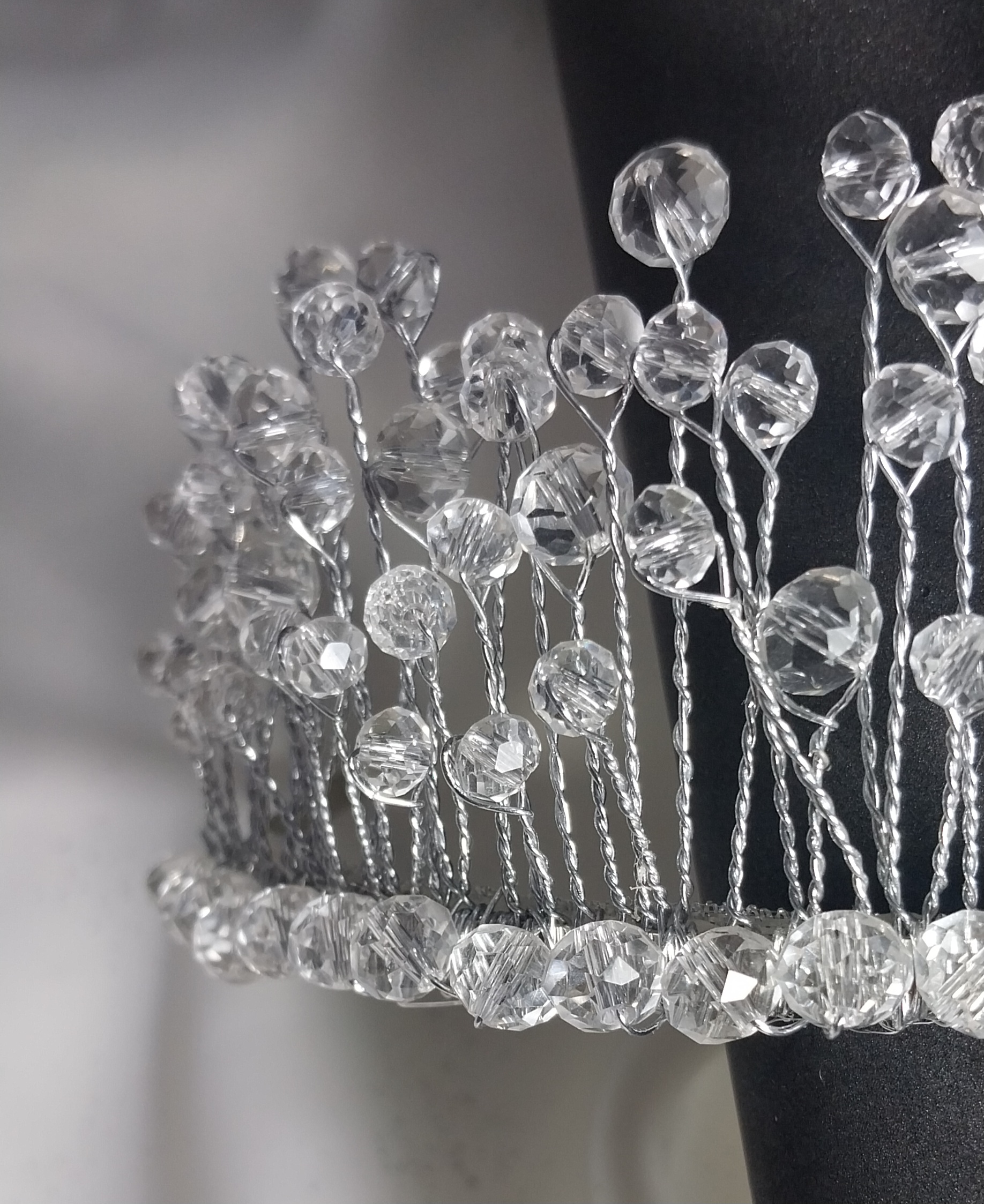 این تاج با طراحی الهامگرفته از طبیعت ساخته شده؛ شاخههای ظریف که در انتهای هرکدام یک کریستال شفاف و درخشان قرار گرفته است.